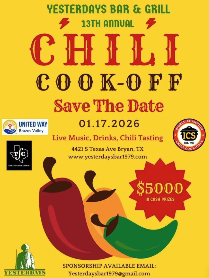 This year will mark the 13th Annual Chili Cook-Off in College Station and their second year hosting and collaborating with local charities in Brazos County. Morgan Cole, manager at Yesterday’s Bar & Grill in College Station and organizer of the Chili Cook-Off held at Yesterday’s, discussed the organization behind the Chili Cook-off in the Bryan-College Station Area.
