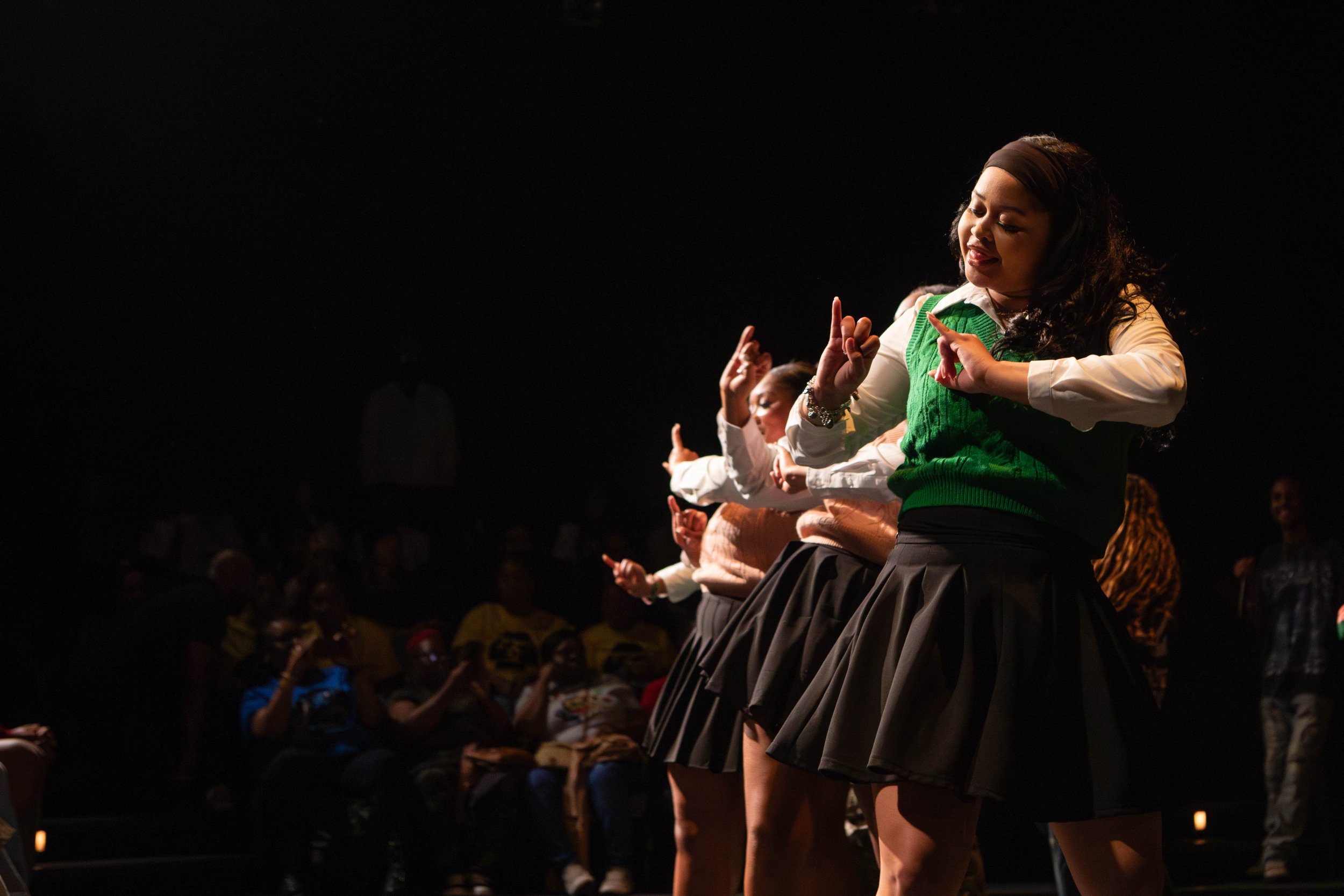 Member of the Luminous Lambda Lambda Chapter of Sigma Gamma Rho Sorority, Inc. of Texas A&M strolls during the BHM Step Show in Rudder Auditorium on Friday, Feb. 28, 2025. (Ashely Bautista/BCS Chronicle)