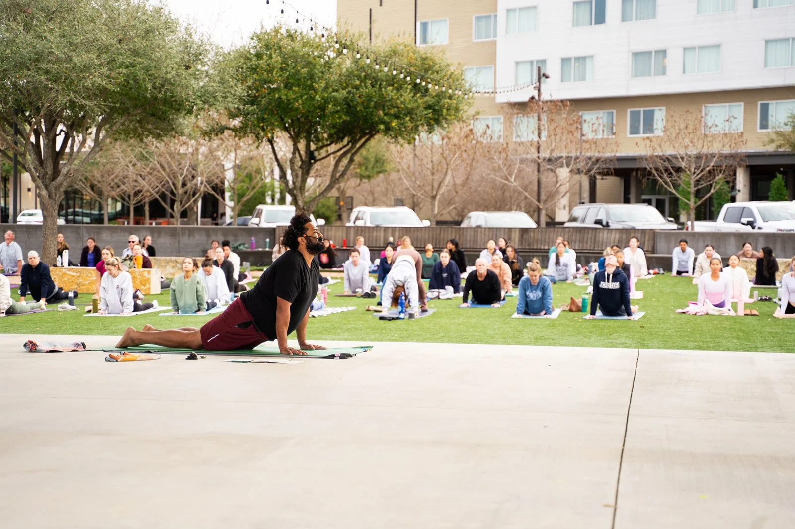 Community yoga session at Lake Walk. (Satterfield Group)